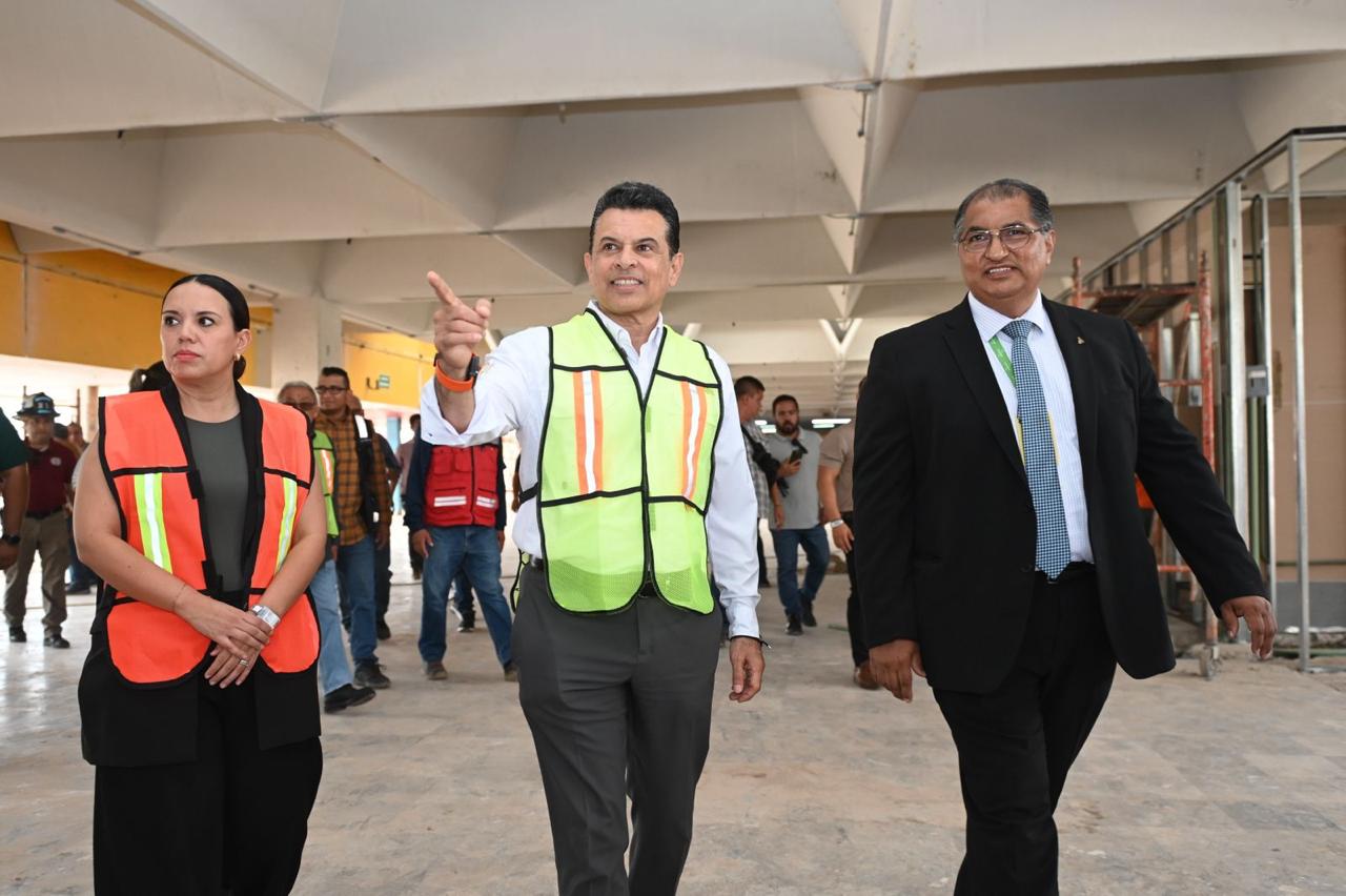 En gira de trabajo, el alcalde Eduardo Gattás Báez visitó este viernes el inmueble, donde junto al gerente José del Refugio Calderón y el secretario de Obras Públicas Eusebio Alfaro Reyna, realizó un recorrido de supervisión del avance de trabajos de la obra.