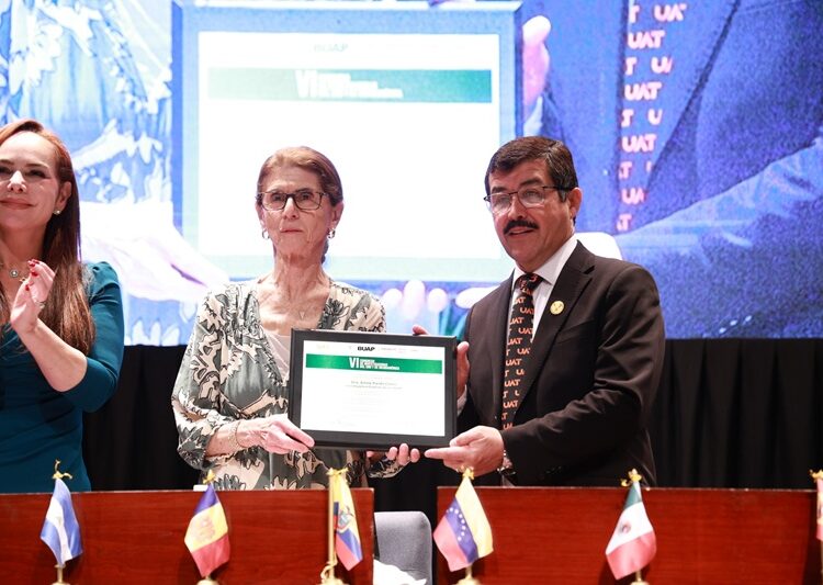 Al término de su exposición, el rector Dámaso Anaya entregó un reconocimiento institucional a la Dra. Pardo por su destacada trayectoria y por su aportación al fortalecimiento de la comunidad científica iberoamericana.
