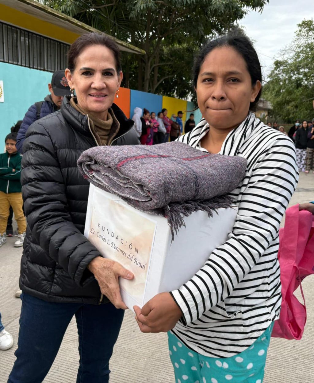 Durante el evento, se hizo entrega de despensas básicas y cobijas, artículos esenciales para mitigar el reciente frente frío registrado en la zona.