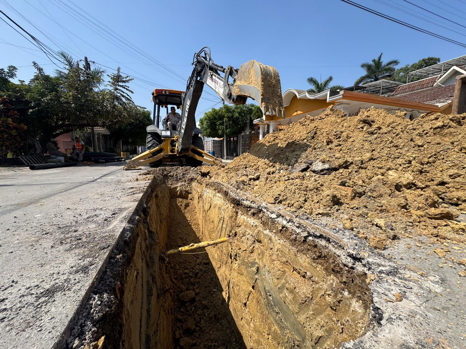 Las labores se desarrollan en la calle Licenciados, entre Médicos y Contadores, donde se lleva a cabo la sustitución de 100 metros lineales de tubería de 12 pulgadas, la cual presentaba un avanzado deterioro. Esta condición provocó un hundimiento en la vialidad, por lo que fue necesaria la intervención del organismo operador para evitar mayores riesgos.